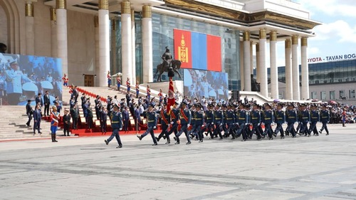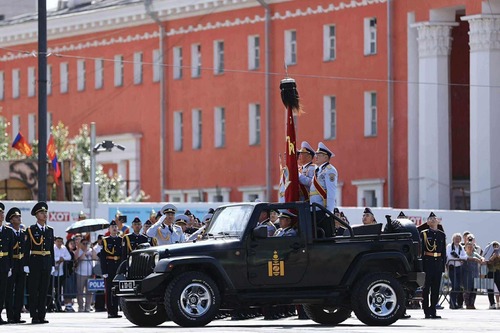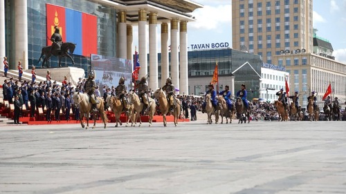 Морьт цэргүүд Хүннү гүрэн, Их Монгол Улс, Богд хаант Монгол Улс, Ардын журамт цэрэг, Ардын армийн туг болон Төрийн далбааг залан явснаар “Төрийн далбааны өдөр”-т зориулсан ёслолын жагсаал өндөрлөлөө.