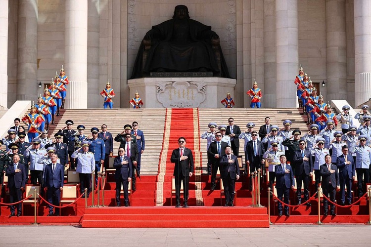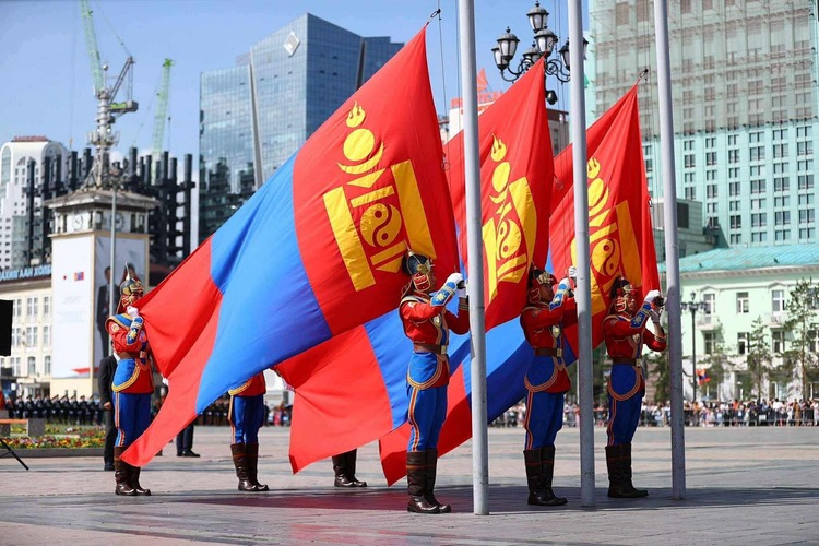 Төрийн далбааг мандуулах үед хөгжимд Төрийн дуулал эгшиглэж, 21 удаа ёслолын буудлага үйлдэн хүндэтгэл үзүүллээ.