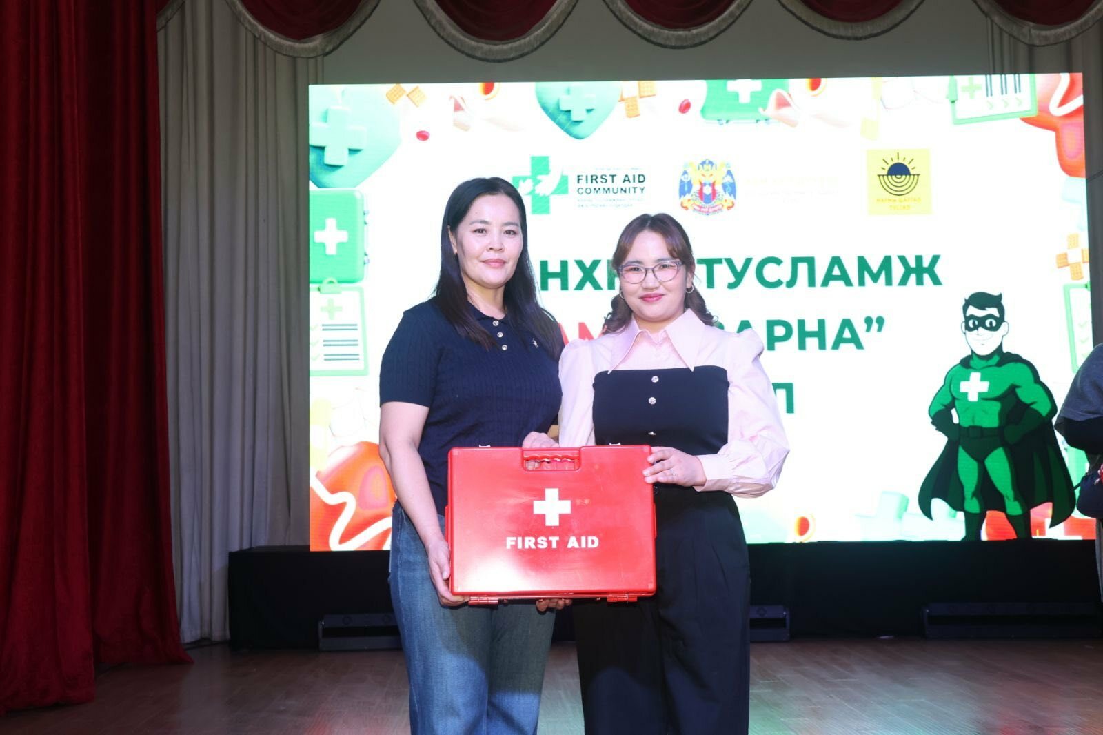 Хүүхэд бүрийг аюул, ослын үед өөртөө болон бусдад тусламж үзүүлэх чадвартай, хариуцлагатай иргэн төлөвшүүлэх зорилготой тус төслийн хүрээнд өнөөдөр 50 сургагч багш сурагчдад гэрчилгээгээ гардуулж, дүүргийн ЕБ-ын 23 сургуульд анхны тусламжийн ханын самбар, иж бүрэн хэрэгсэл хүлээлгэн өглөө.
