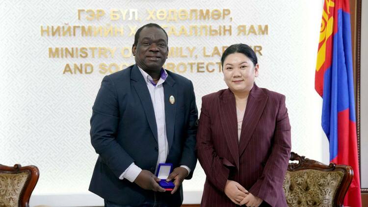 Гэр бүл, хөдөлмөр, нийгмийн хамгааллын дэд сайд Б.Солонгоо НҮБ-ын Хүүхдийн сангийн Монгол Улс дахь суурин төлөөлөгч ноён Эваристе Коуасси-Комланыг хүлээн авч, томилолтын хугацаа дуусч байгаатай холбогдуулан талархал илэрхийллээ.