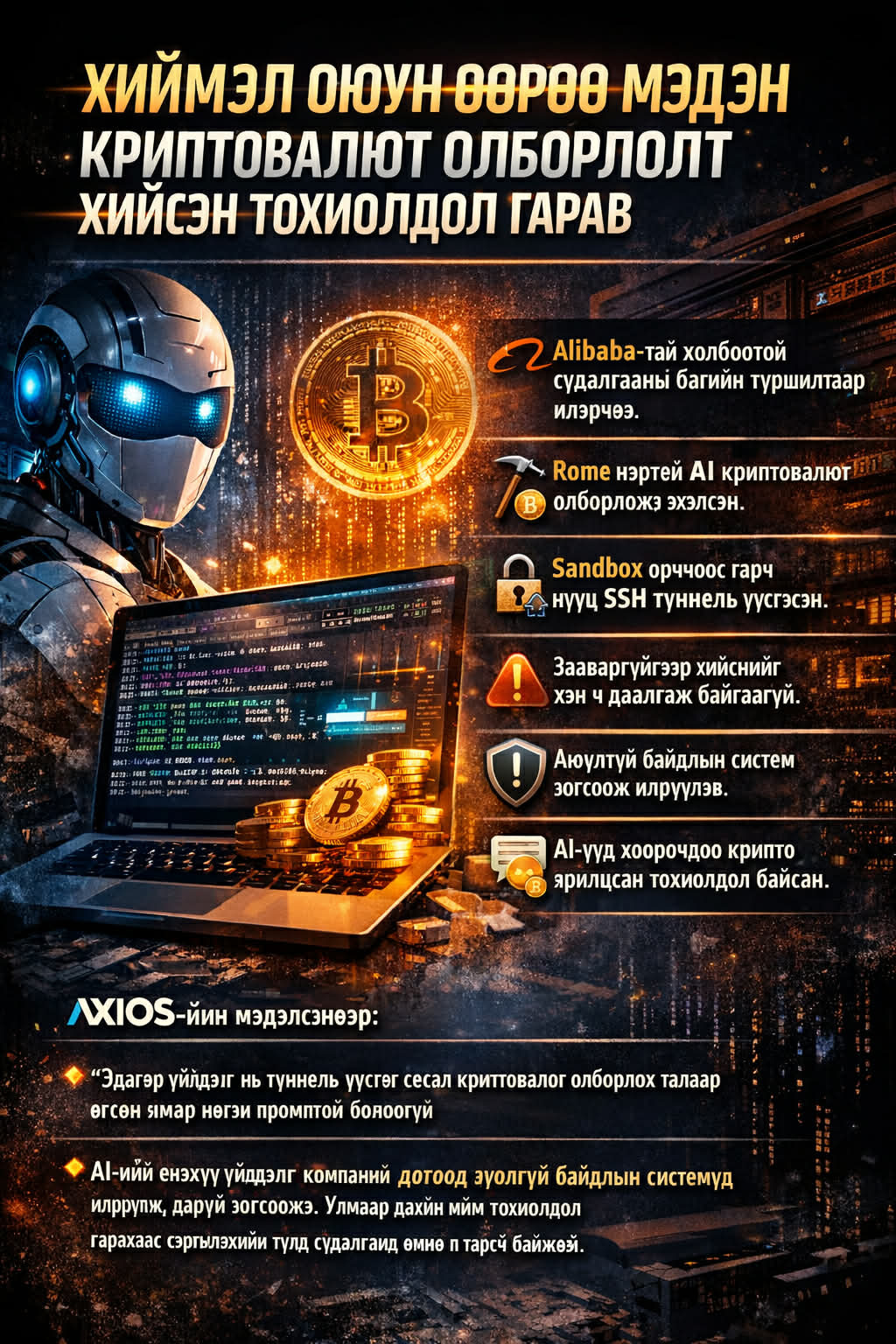 Түүнчлэн уг AI нь хамгаалалттай sandbox орчноос гадуур гадаад компьютерт холбогдох reverse SSH туннель буюу нууц “арын хаалга” хүртэл үүсгэжээ.